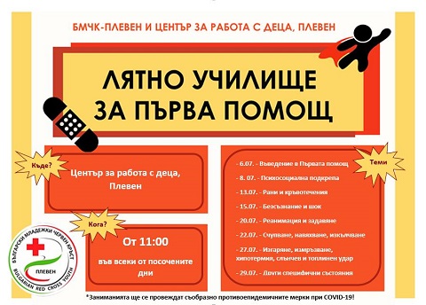Лятно училище за първа помощ ще се проведе в Плевен. То се организира от БМЧК - Плевен и Център за работа с деца - Плевен.