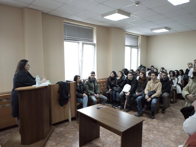 От 10:00 часа в зала No4 в Съдебната палата беше представена лекция на тема „Разделение на властите според Конституцията на Република България. Представяне на професиите съдия и прокурор“ от съдия Ана Илиева пред ученици от Професионална гимназия по ресторантьорство, търговия и обслужване-Плевен, Професионална гимназия по туризъм „Алеко Константинов“, Профилирана гимназия с преподаване на чужди езици „Димитър Димов“ и от Държавната финансово-стопанска гимназия „Интелект“, които бяха поканени да присъстват на днешната инициатива от председателя на Районен съд – Плевен – съдия Вера Найденова.