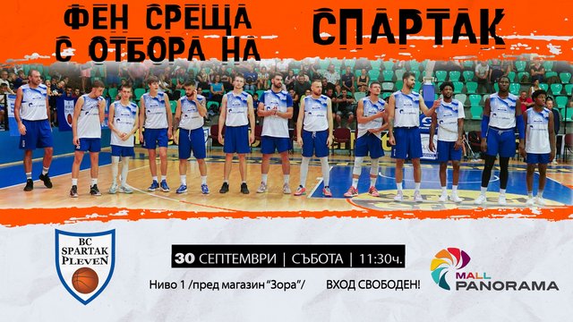 Фен среща с целия отбор на баскетболния Спартак ще се проведе в Панорама мол Плевен на 30 септември. Броени дни преди първите мачове на тима в Националната баскетболна лига и Европейската северна баскетболна лига, треньорът Любомир Минчев и възпитаниците му ще срещнат със своите малки и големи почитатели, като събитието има за цел да се превърне в един истински празник на баскетбола.
