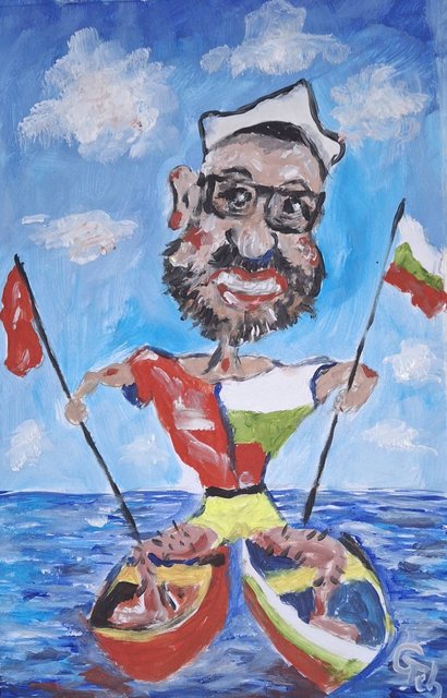 1. Шарж, озаглавен Мореплавател 35х25 Масло на търг от днес до края на Олимпиадата. Начална цена 100 лв.