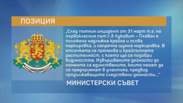 В позиция на Министерски съвет се обяснява, че на пътя, където стана страшната трагедия, вече има мерки. Но Николай Попов е песимист, виждайки какви дейности се извършват. Според него асфалтът там е фалшив, експертизи са показали, че той е с много ниско сцепление, а знаците са поставени след смъртта на дъщеря му.