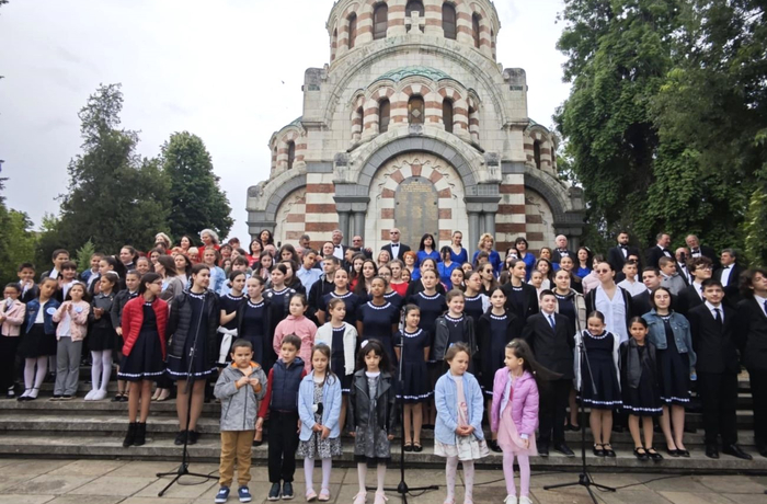 В един глас песента запяха училищни хорове, заедно с Общински хор „Гена Димитрова“