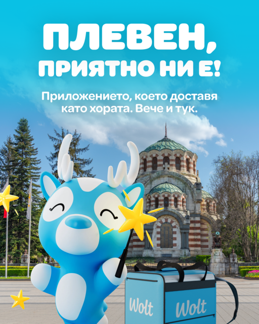 Wolt, водещата платформа за доставки, вече е достъпна и в Плевен. След като се утвърди в София, Пловдив и само преди няколко седмици стартира във Варна, Wolt предприема следващата стъпка за разширяването си в страната. За жителите и гостите на Плевен това означава, че всичко, от което се нуждаят в ежедневието си – храна, закуски, напитки, хранителни продукти, стоки за домакинството, цветя, храна за домашни любимци и много други – ще бъде доставено бързо, с внимание към качеството и лично отношение, които са запазената марка на Wolt.