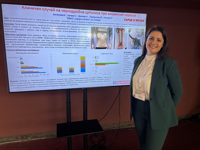 Лекари от отделението по ендокринология и болести на обмяната в ,Сърце и Мозък‘, под ръководството на д-р Силвия Ганева, взеха участие в XIII юбилеен конгрес на Българското дружество по ендокринология. На най-престижния български форум по ендокринология, който се проведе в Пловдив, екипът се представи блестящо с три научни доклада в две сесии: метаболитен синдром и сродни състояния, заболявания на щитовидната жлеза, както и с един постер с интересни и казуистични клинични случаи. В изнесените материали се демонстрира високото ниво на експертна оценка, диагностични възможности и съвременна терапия.