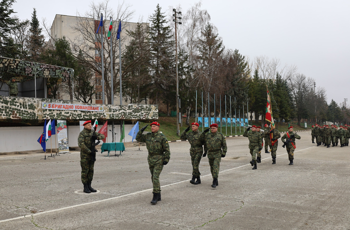 Командирът на 5 БрК полковник Вълев отправи приветствие към личния състав.