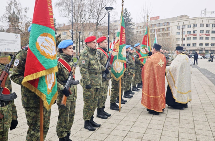 Началникът на ВВВУ „Г. Бенковски“ бригаден генерал Юлиян Радойски прие строя, след което свещенослужители от плевенски храмове осветиха бойните знамена на военните формирования от гарнизон Плевен. На площада бяха военнослужещи от ВВВУ „Г. Бенковски“, Пето бригадно командване - Плевен, Военно формирование 38220 - Плевен и 12-а авиационна база Долна Митрополия.