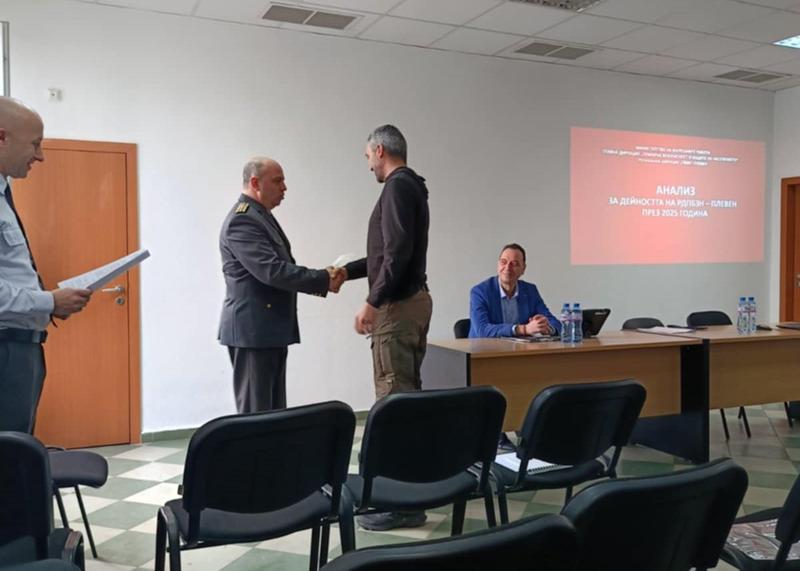 Грамота за това беше връчена на ръководителя на звеното Митко Николов от комисар Станислав Атанасов - директор на Регионалната дирекция „Пожарна безопасност и защита на населението“