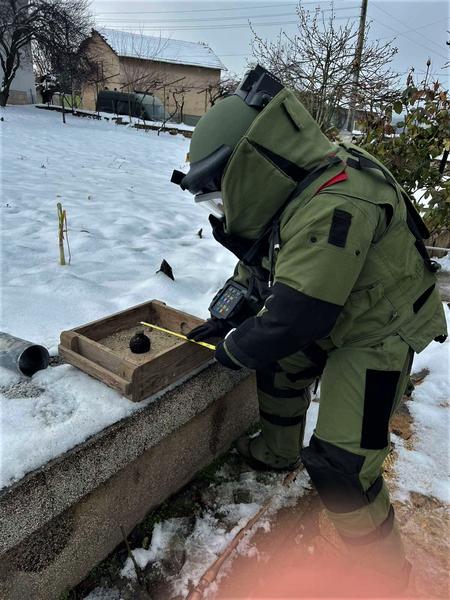 Днес, 6 февруари, специализирано формирование, от състава на 55-ти инженерен полк - Белене, под ръководството на лейтенант Свилен Маринов, разузна 1 брой корозирала ръчна граната тип Ф1, открита в близост до частен имот в село Петърница, област Плевен. Гранатата беше транспортирана и унищожена от екипа в покрайнините на селото, при стриктно спазване на мерките за безопасност.