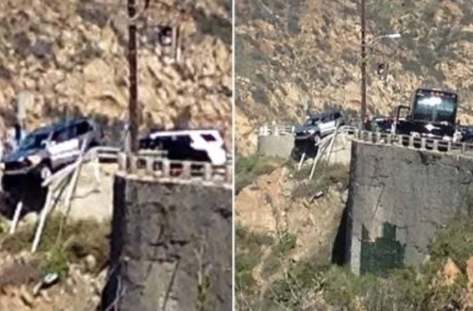 Две страховити катастрофи преживя мъж на опасен завой, надвиснал над каньона Малибу в Калифорния. Сребр...