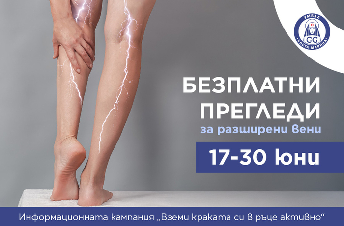 От 17 до 30 юни лекари от цялата страна ще провеждат безплатни профилактични прегледи за разширени вени...